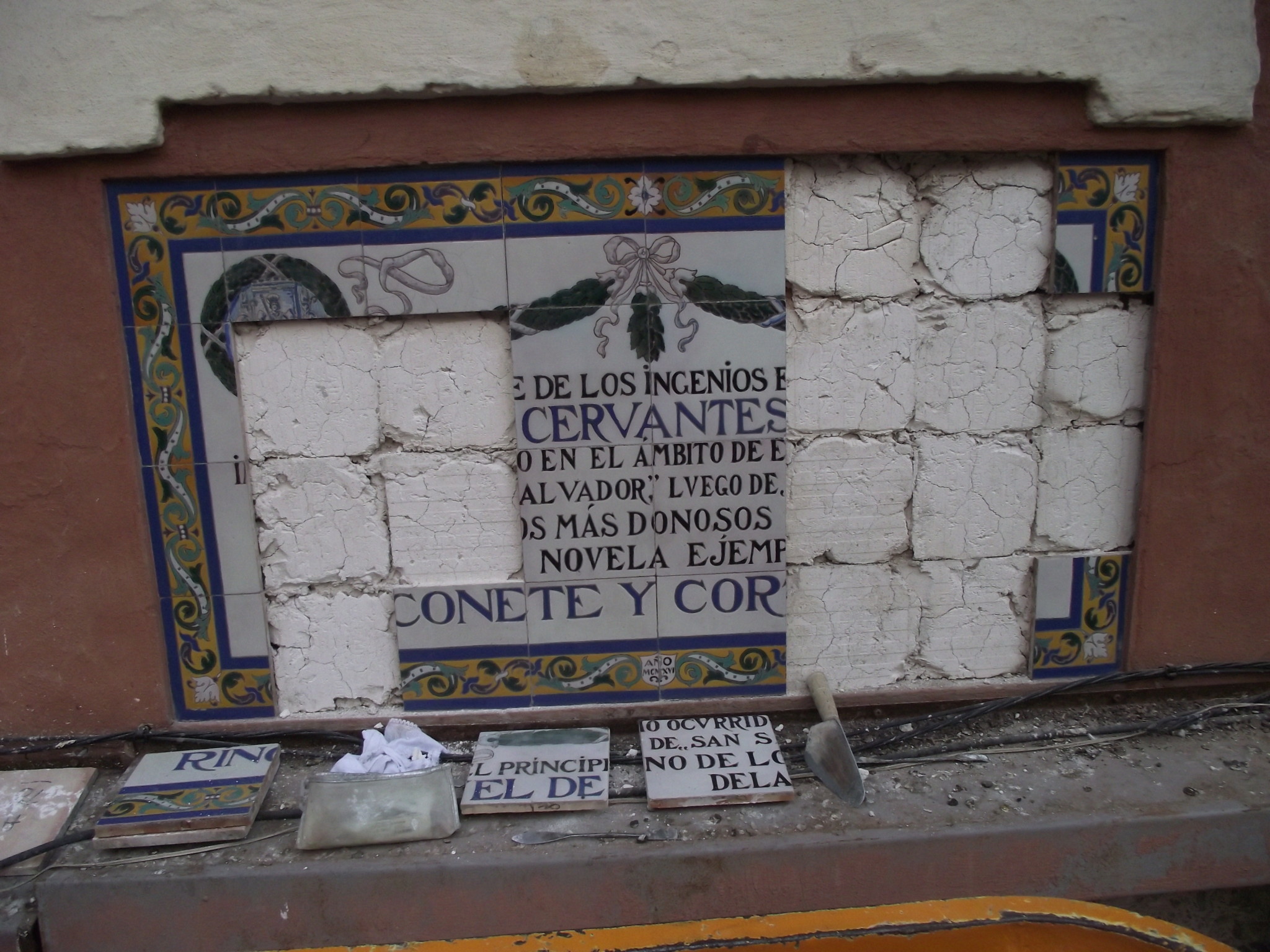 La suerte que han corrido los azulejos cervantinos en sus cien años de vida ha sido diversa según los casos. En los peores desaparecieron y en los mejores permanecieron sin recibir nada más que la suciedad propia del medio ambiente. Sin embargo, contamos con algunos ejemplos que fueron intervenidos y otros tantos que fueron trasladados. […]