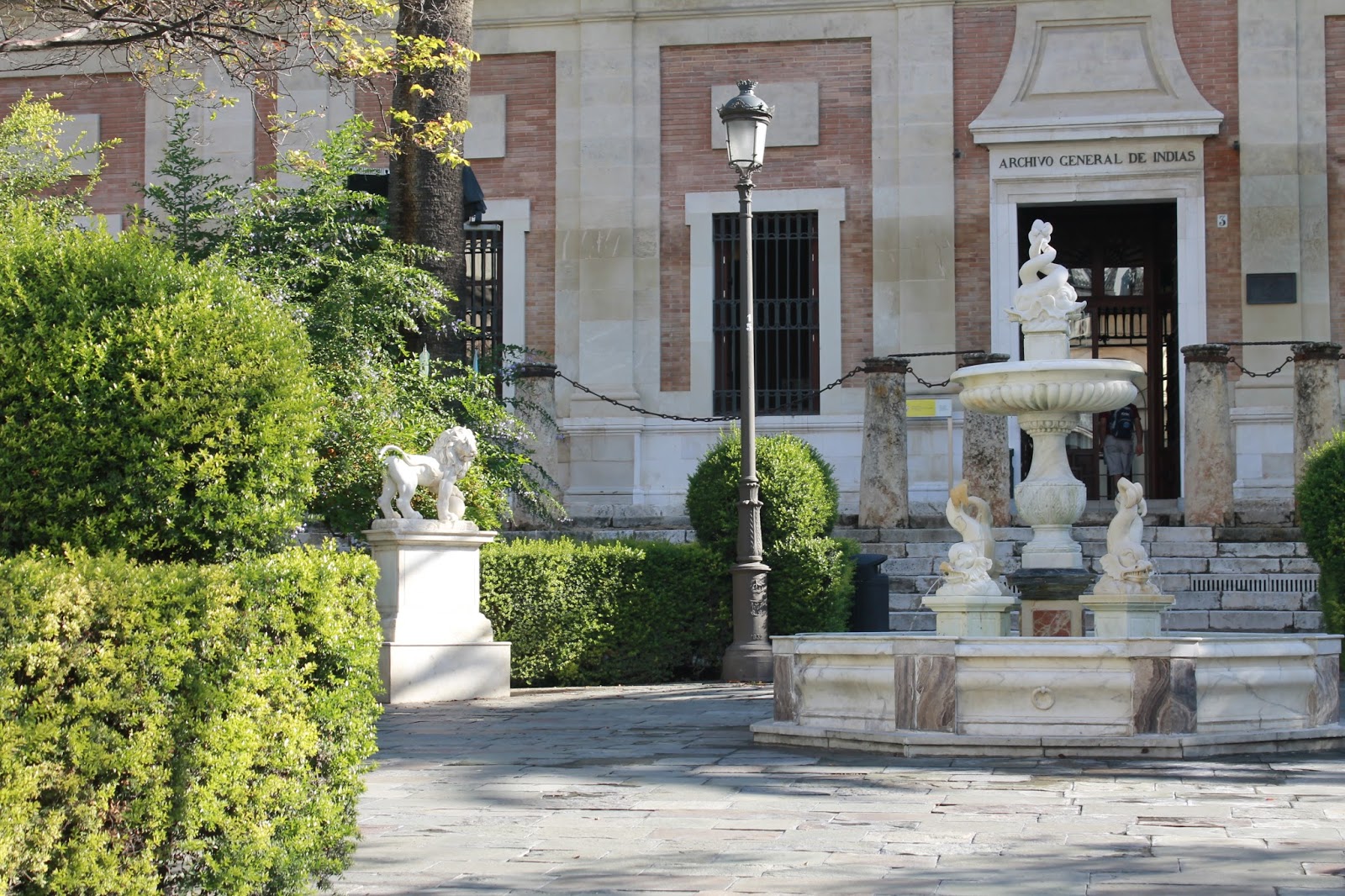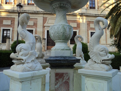 Restauradas las esculturas y la fuente del Archivo de Indias