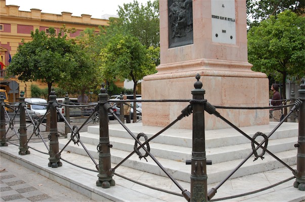 El Monumento a Daoiz está rodeado por una verja realizada en bronce conformada por 16 cañones que dividen los distintos tramos. Éstos se completan con dos escobillones cruzados y una corona de laurel en el centro. Las partes inferiores y superiores se resuelven con cordones o sogas que van anudadas, enlazando así los distintos tramos. […]