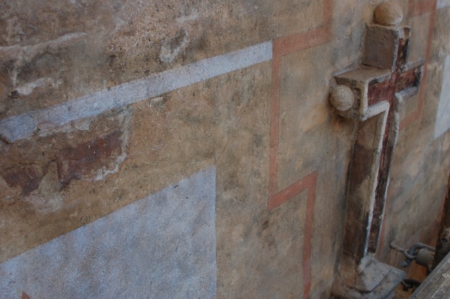 Ataque biológico, restos de policromía con morteros superpuestos