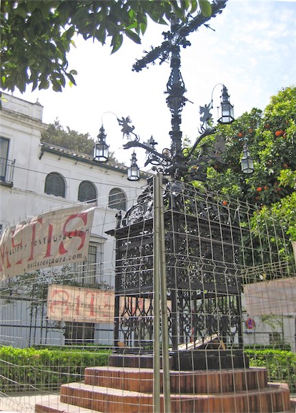 La Cruz de la Cerrajería vuelve al lugar donde ha permanecido el último siglo: la Plaza de Santa Cruz, después de que hayan culminado los trabajos de restauración contratados por el Ayuntamiento de Sevilla a través de la Gerencia de Urbanismo.