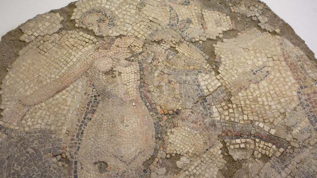Entre esos tesoros maravillosos que permanecían prácticamente inéditos destaca el Mosaico del rapto de Europa, de 3,77 x 3,77 metros, hallado en 1896 en Santiponce, en la zona conocida como la Haza de la Alcantarilla, y enviado entonces al museo por la comisión de seguimiento. La prensa pudo ver un dibujo que reproducía su ubicación en el Convento de la Merced, actual sede del Bellas Artes de Sevilla y primera sede del Arqueológico, donde el mosaico fue expuesto. Sin embargo, cuando se trasladó al Pabellón de la Exposición del 29 no llegó a mostrarse en sala, por lo que pasó prácticamente al olvido. Alrededor de 400 teselas conforman el fascinante mosaico y muchas de ellas conservan su policromía e integran distintos materiales como mármol, cerámica y pasta vítrea. El rapto de Europa fue una iconografía muy popular y el Museo Arqueológico dispone de ejemplos similares hallados en Écija o Cártama. En este caso el mosaico corresponde a la decoración de una estancia cuadrada, y se puede ver a Europa recostada sobre la grupa del toro. En las dos esquinas que se conservan aparecen máscaras de los océanos flanqueadas por dos delfines, que ilustran el carácter protector del hogar de esta pieza de excelente factura que los expertos datan a principios del siglo III.