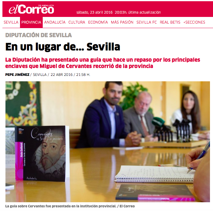 La Diputación ha presentado una guía que hace un repaso por los principales enclaves que Miguel de Cervantes recorrió de la provincia PEPE JIMÉNEZ / SEVILLA / 22 ABR 2016 / 21:58 H Tal día como hoy, hace ya 400 años, el «genio de las letras hispánicas», Miguel de Cervantes, recibió su último adiós. En homenaje a […]